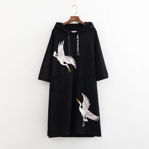The imprinted crane pattern is clear and has ethnic customs. Loose version, three-dimensional cutting, smooth lines, modify the figure. Pure cotton fabric, skin-friendly and breathable, feel good. Hooded design, classic and beautiful.